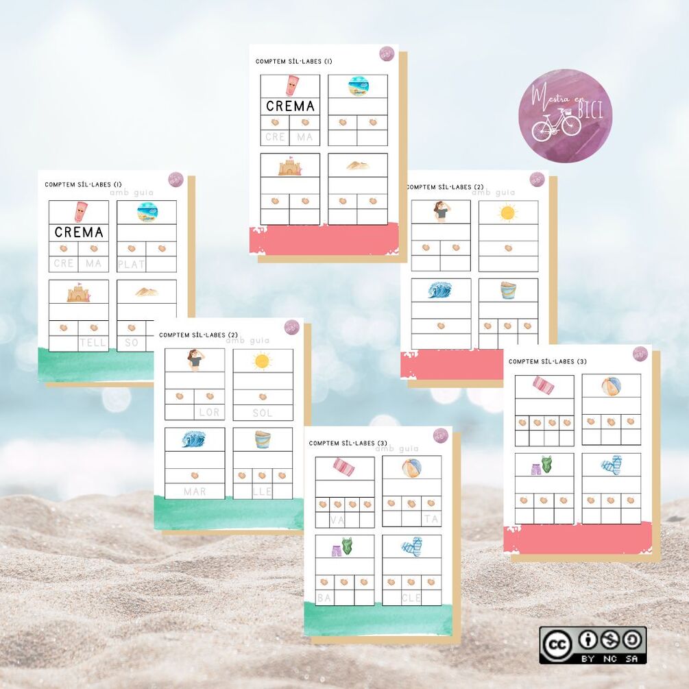 Aquest recurs consta de 6 fulls per treballar el compatge de síl·labes amb vocabulari d'estiu 🌊⛱️🌞.