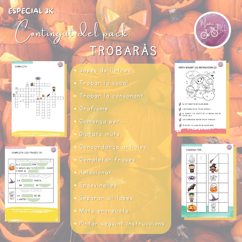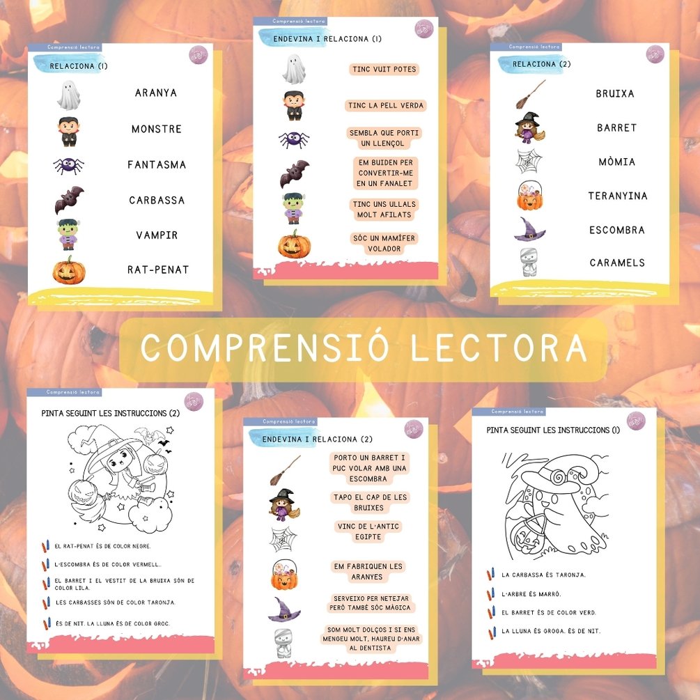 Recull d'activitats de lectoescriptura per treballar el vocabulari de Halloween, ideal per l'aula d'acollida i pels primers cursos de primària. Tot i això, també poden servir-vos amb alumnat NEE i aules SIEI.