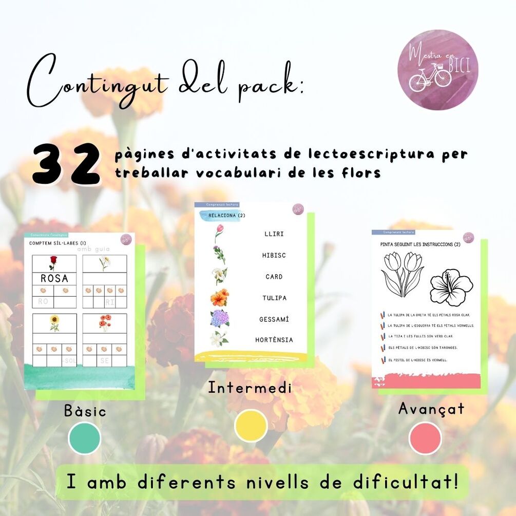 Es tracta d'un recull d'activitats de lectoescriptura per treballar el vocabulari de diferents flors, ideal per l'aula d'acollida i pels primers cursos de primària. Tot i això, també poden servir-vos amb alumnat NEE i aules SIEI.