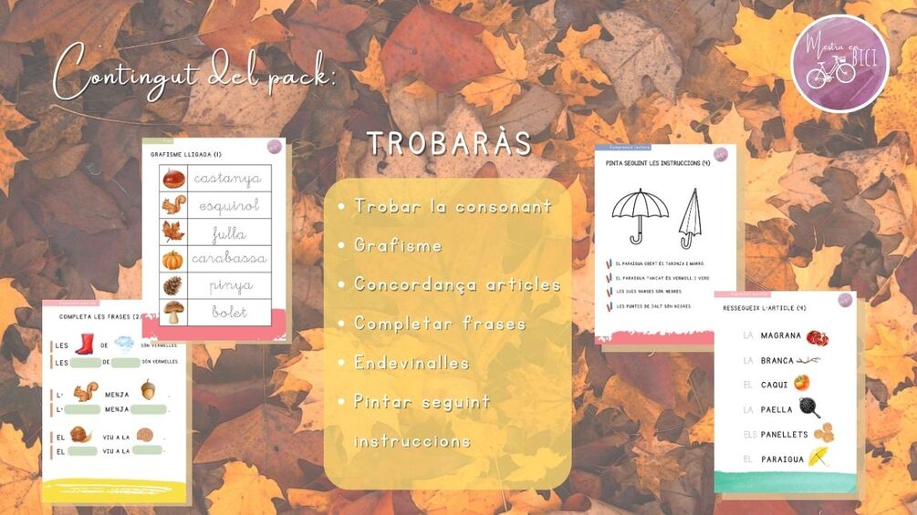 Recull de 48 pàgines d'activitats d'ampliació per treballar la lectoescriptura al voltant del vocabulari de la tardor.