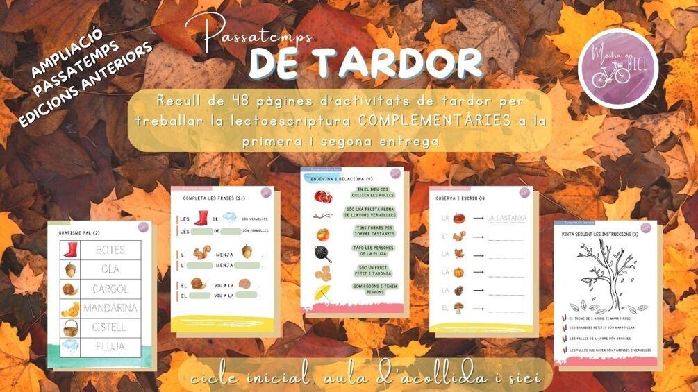 Recull de 48 pàgines d'activitats d'ampliació per treballar la lectoescriptura al voltant del vocabulari de la tardor.