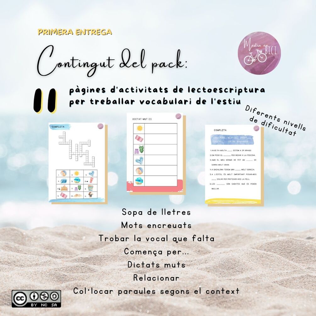 11 pàgines d'activitats variades per treballar la lectoescriptura al voltant del vocabulari de l'estiu.