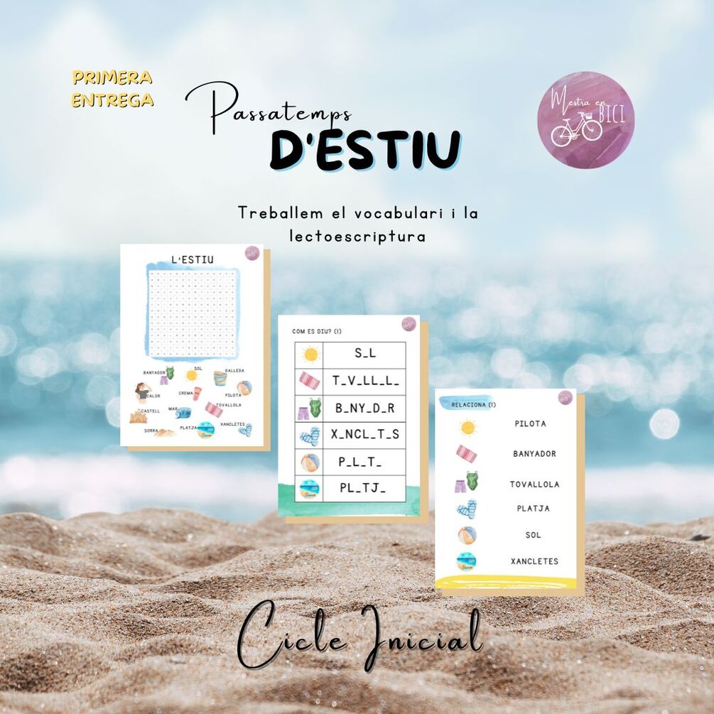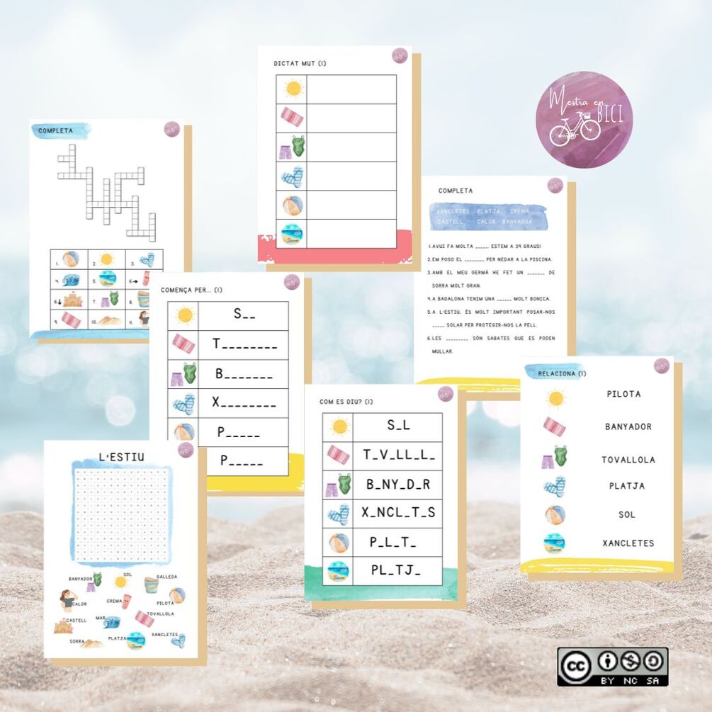 11 pàgines d'activitats variades per treballar la lectoescriptura al voltant del vocabulari de l'estiu.