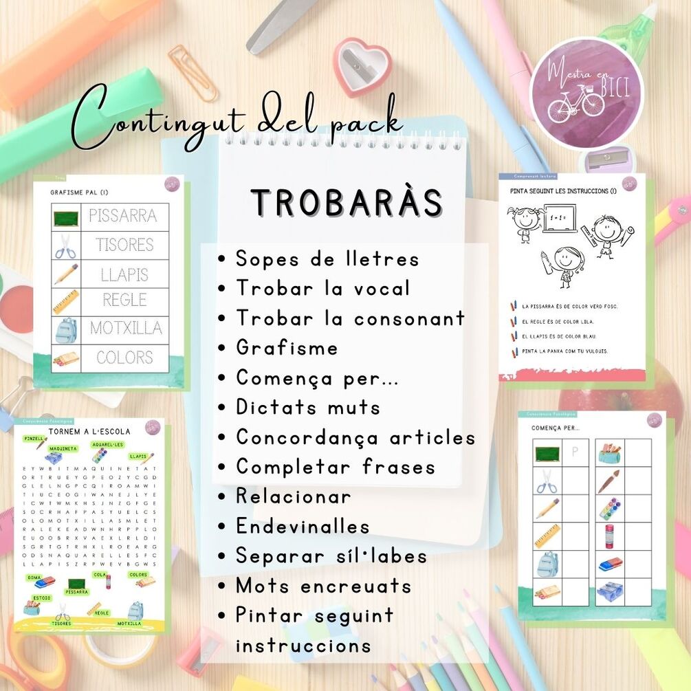 Recull d'activitats de lectoescriptura per treballar el vocabulari de l'aula, ideal per l'aula d'acollida i pels primers cursos de primària.