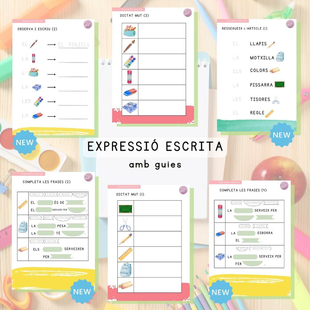 Recull d'activitats de lectoescriptura per treballar el vocabulari de l'aula, ideal per l'aula d'acollida i pels primers cursos de primària.