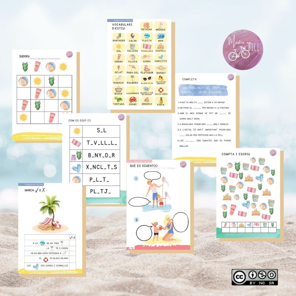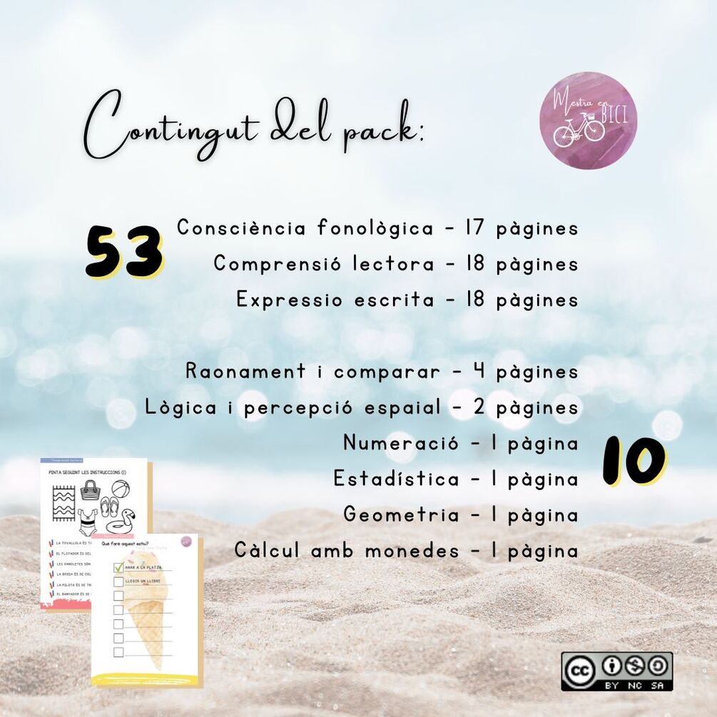Recull de 63 pàgines d'activitats d'estiu per treballar la llengua (53 pàgines) i les matemàtiques (10 pàgines).